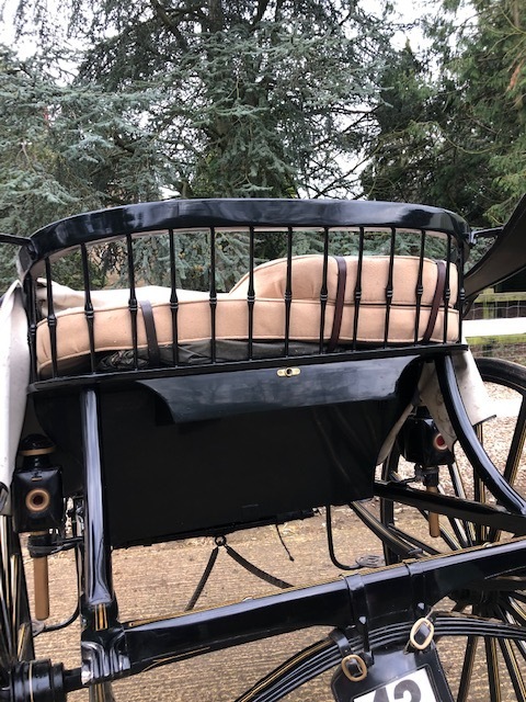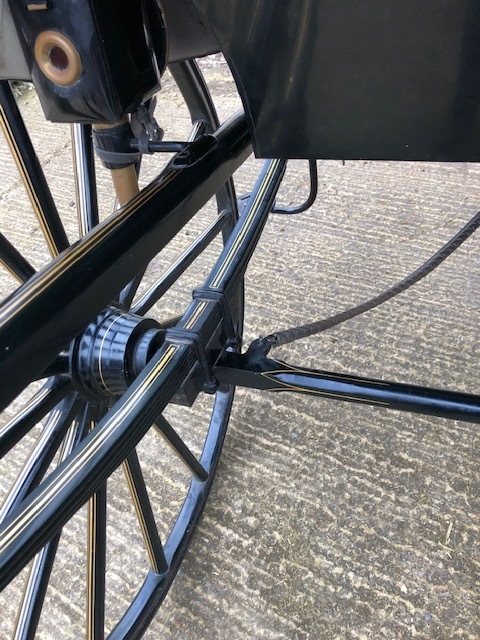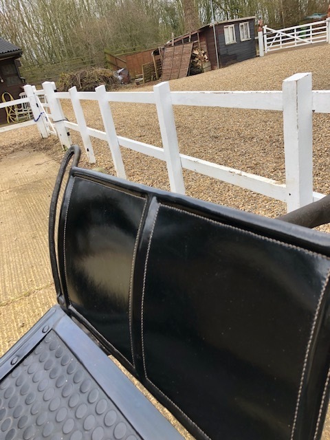 Skeleton show gig by John Gapp used for private driving at County level - elegant and comfortable gig with swan neck shafts, beige upholstery. Painted blue with gold coach lines. Suit 14.2 - 15.2hh with 48" diameter wheels. Many more photos available (Norfolk)